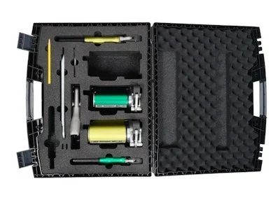 Laatikko valmistettu muovista ja sisältää seuraavat osat: työkalusarjan säilytyslaatikko, laajennustyökalu d32-40, momenttiavain räikällä d32-40, vasta-avain d32-40, putkileikkuri.
